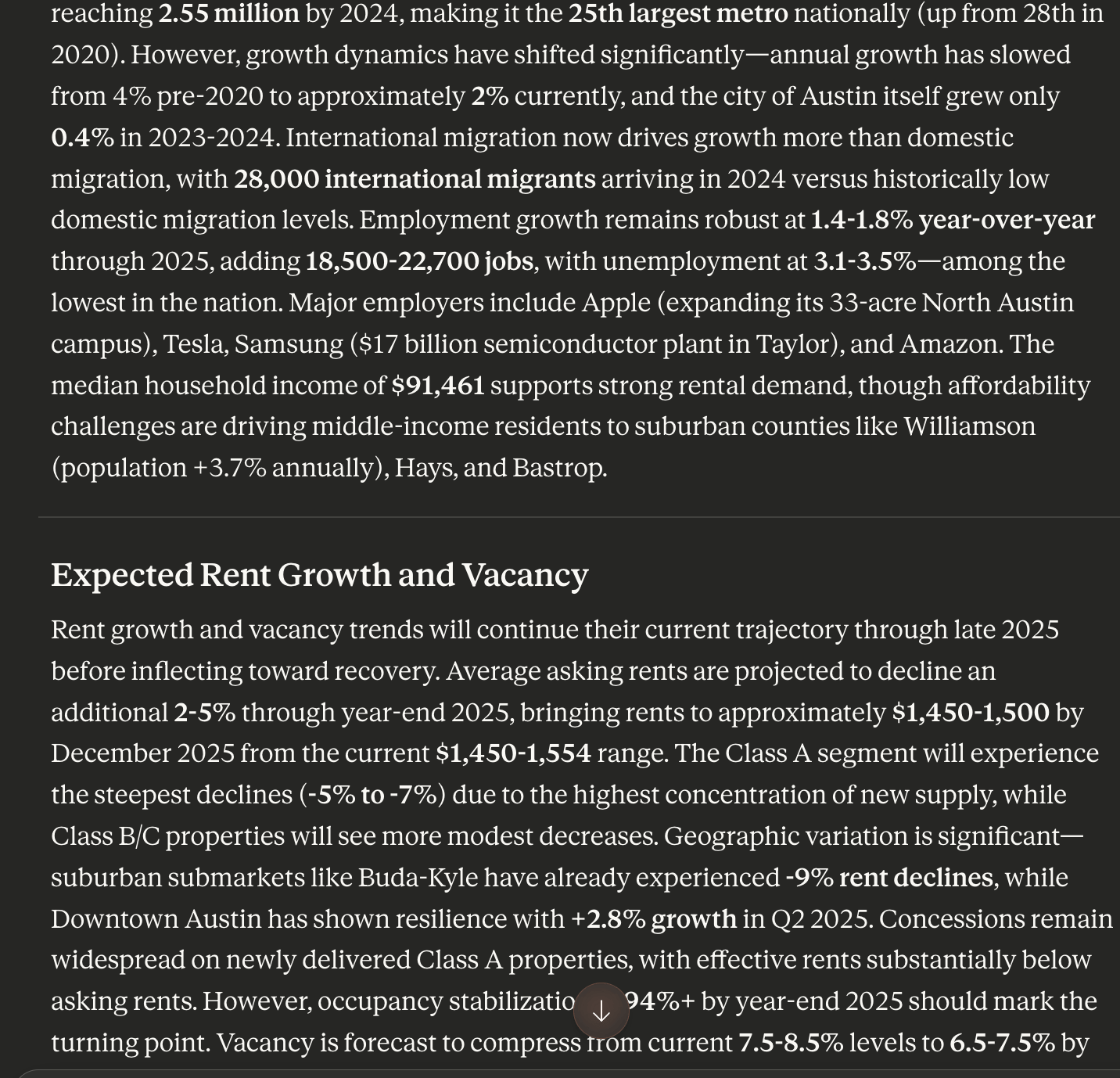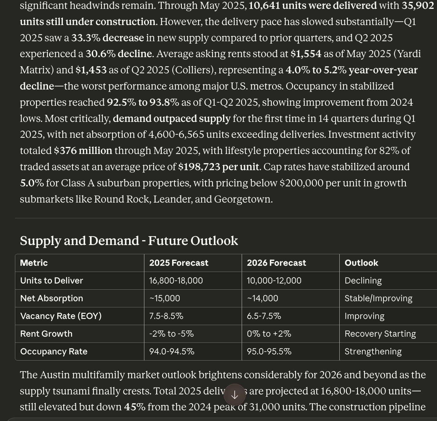 Create a new chat and ask it to analyze a market and property type!